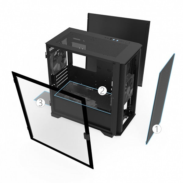 Air 100 LITE Mesh Front Swivel Tempered Glass mATX Case w/2*12cm Fans - Black