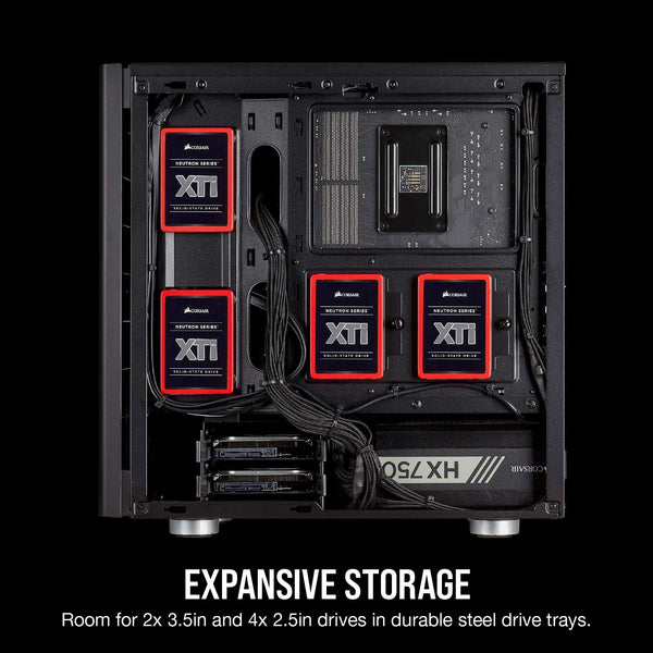 Two included CORSAIR SP120 fans ensure cool air is directed to the hottest components, without any interference from drive cages.