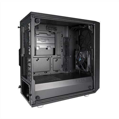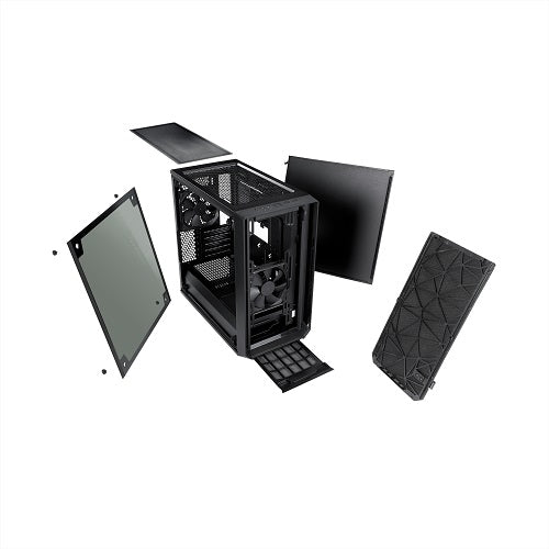 Meshify strikes an aggressive pose in the Fractal Design lineup with unparalleled cooling performance and a defiant new look. Like black diamond facets, the angular asymmetry of the Meshify C Mini – Dark TG carves a space uniquely its own as a new force in high-airflow design.