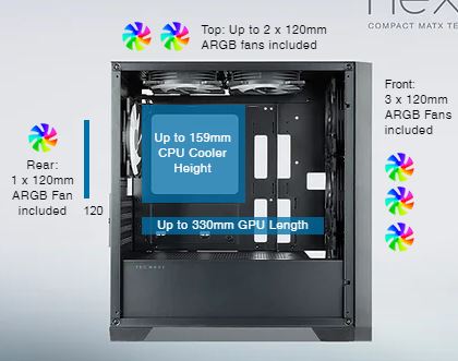 Tecware Nexus Air T3 M-Atx Case 6xARGB Fans Black