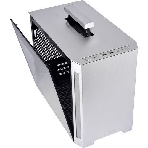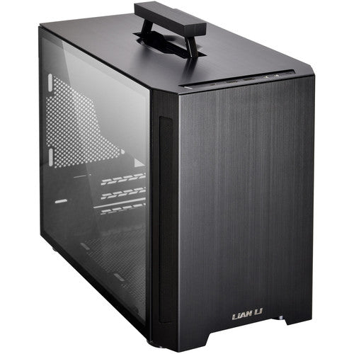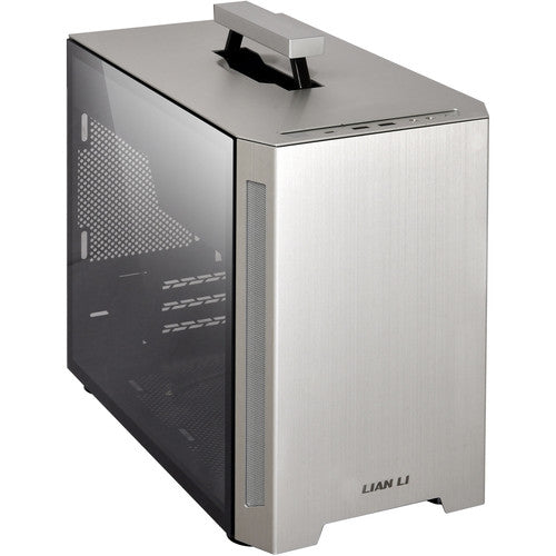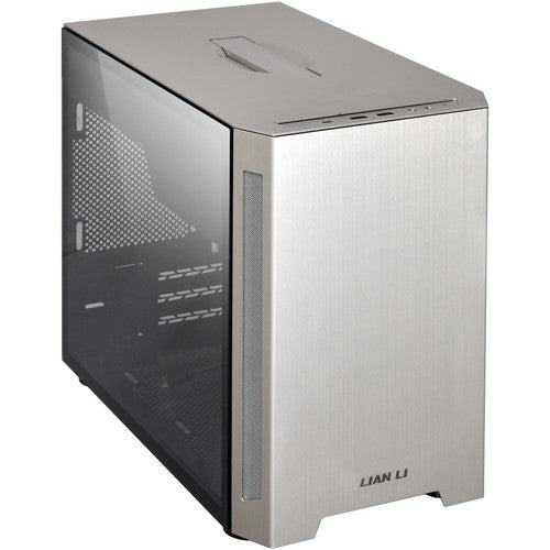 Build your compact computer system with style using the silver TU150 Mini Tower Case from Lian Li. This brushed aluminum mini tower case supports mini-DTX and mini-ITX motherboards and features an easy-to-remove tempered glass side panel that completely shows the system's interior. Lian Li's push-pin technology allows you to clip the panel on without screws. The case also includes three full-size expansion slots with room for a 12.5"-long GPU, and you can install 120mm fans on its front, rear, and bottom. Alternatively, a 120mm radiator can be installed onto the rear mount for liquid cooling.