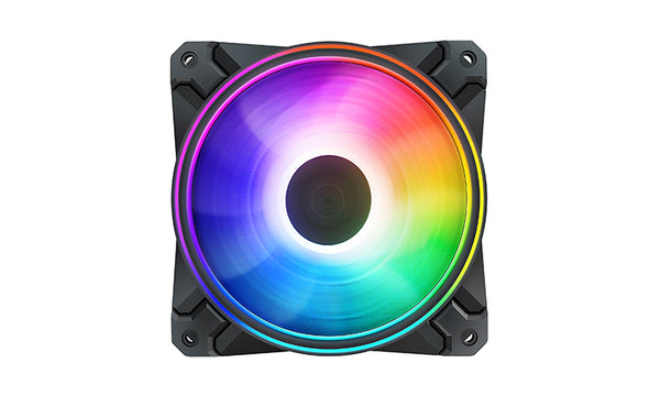 The CF120 PLUS case fan fits 18 individual addressable RGB LEDs across the fan blades and housing to create vibrant lighting effects in a layered design.