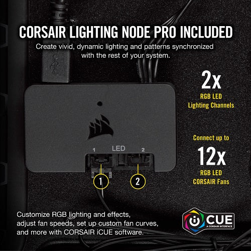 The CORSAIR LL120 RGB LED PWM fan boasts 16 independent RGB LEDs across two separate light loops to create vibrant lighting and visual effects.