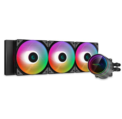The DeepCool CASTLE 360EX A-RGB AIO liquid CPU cooler delivers fantastic RGB lighting with three DeepCool CF120 A-RGB PWM fans and our iconic infinity mirror in a 360mm radiator.
