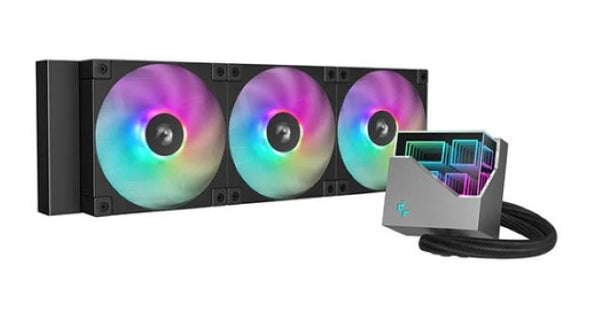 The LT360 ARGB is a high-performance liquid CPU cooler that has been upgraded to DeepCool's chart-topping 5th generation pump and provides strong heat dissipation power with a 360mm radiator, three precision-tuned FD12 ARGB fans, and a multidimensional infinity mirror top cap, all presented in a clean design.