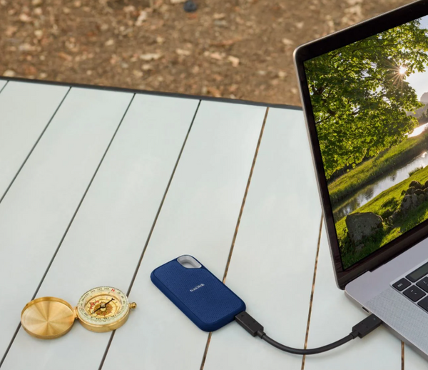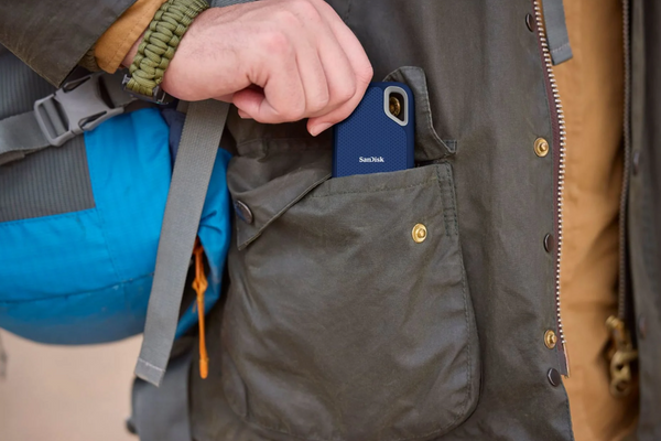 The image showcases its compact nature, suitable for on-the-go data storage.