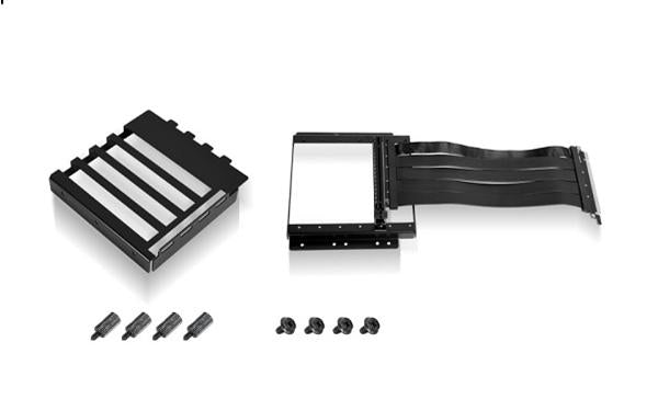 The Lian Li 011D-1X PCI-E Riser Card Kit is compatible with the PC-O11 chassis and allows you to vertically mount your GPU, showcasing its design. It features a PCI Express 16x Gen3 interface and a 220mm cable length.