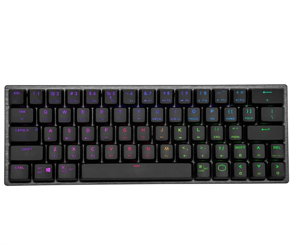 Per‑key RGB illumination bordered by an LED ring; configurable on-the-fly or via Cooler Master’s MasterPlus+ software