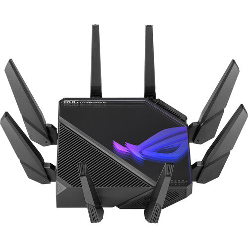 GT-AXE16000 quad-band WiFi 6E (802.11ax) gaming router, new 6 GHz band, dual 10G ports, 2.5G WAN port, dual WAN, AiMesh support, VPN Fusion, Triple-level game acceleration and free network security