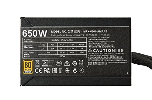 The 80 PLUS Bronze certification guarantees that MasterWatt delivers an average efficiency of 85%.