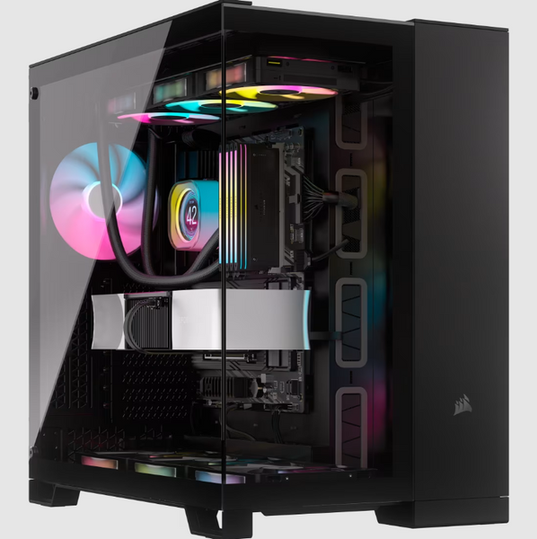 The CORSAIR iCUE LINK 6500X RGB is a sophisticated mid-tower PC case designed for advanced builds. Its dual-chamber layout optimizes airflow and cable management, enhancing system cooling and aesthetics. Equipped with customizable RGB lighting controllable via iCUE software, it offers precise synchronization with other CORSAIR components. The robust black chassis supports high-performance hardware configurations, making it ideal for enthusiasts seeking refined control over both system performance and visual appeal.