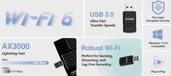 • Wi-Fi 6 technology for enhanced speeds of up to 3000 Mbps