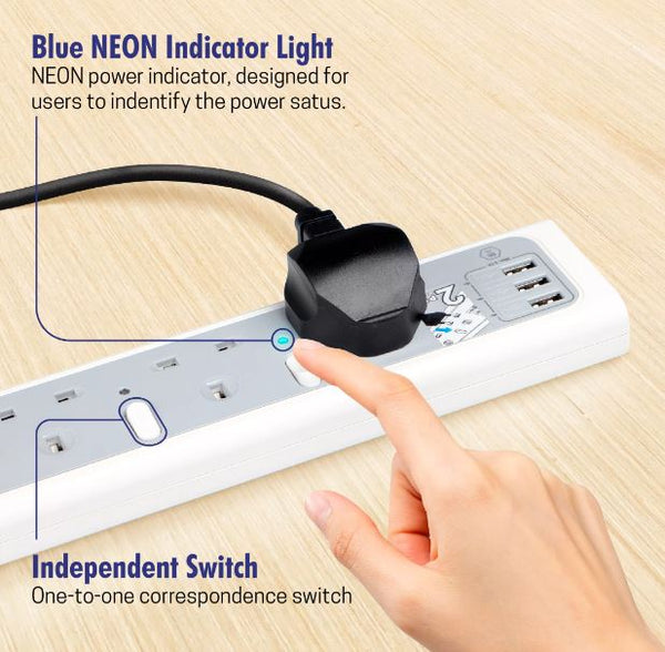 Daiyo DE 298 Surge Protected USB 4 Way Extension Socket