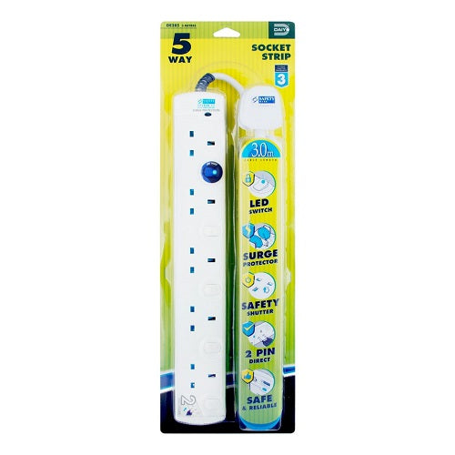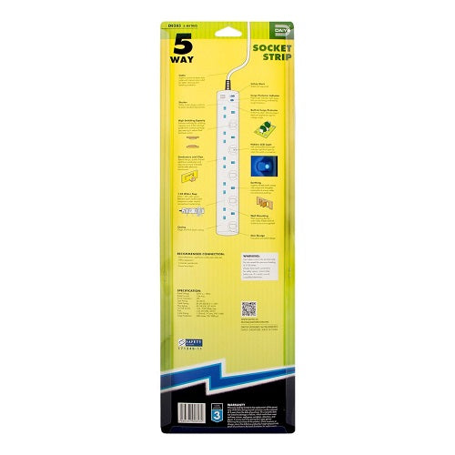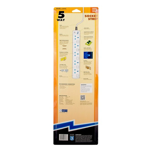 Daiyo DE 285 LED 5 Way Socket Strip With Surge Socket Strip Stylish Compact Design Power Strips are everyday lifes need where most of the people have it in their house. Shells Moulding Electrical Safety LED Switch Compact Design 2-PIN direct Safety Shutters