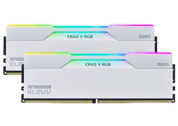 KLEVV Cras V RGB DDR5 6400 CL32 memory kits deliver high-speed performance with stunning RGB lighting, designed for gamers, content creators, and PC enthusiasts. Available in multiple capacities including 32GB (2x16GB), 48GB (2x24GB), and 64GB (2x32GB), and colors black and white, these DDR5 modules support ultra-fast data transfer rates at 6400MHz with a CAS latency of 32, ensuring smooth multitasking and gaming experiences.
