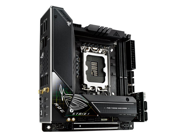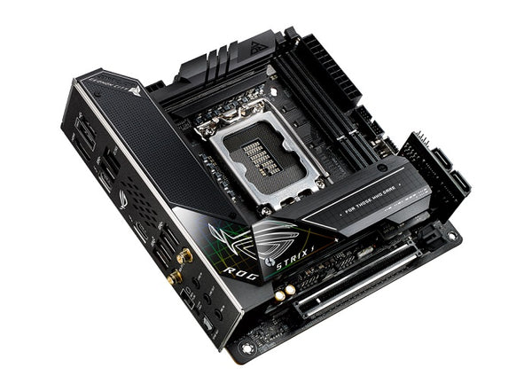 Intel® Z690 LGA 1700 ITX motherboard with PCIe® 5.0, 10+1 power stages, Two-Way AI Noise Cancelation, AI Overclocking, AI Cooling, AI Networking, WiFi 6E (802.11ax), Intel® 2.5 Gb Ethernet, two M.2 slots with heatsinks and backplates, two Thunderbolt™ 4 USB Type-C®, SATA and Aura Sync RGB lighting